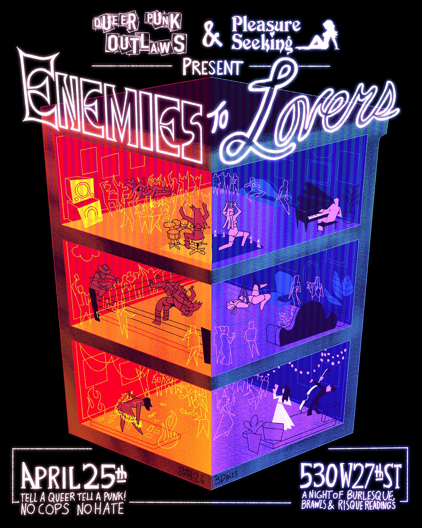 This time, I’m teaming up with Queer Punk Outlaws and the most talented artists, writers, and performers in New York City for an all-night variety show. Expect over-the-top performance art, punk bands, live music, and knock-down, drag-out showdown in the ring.