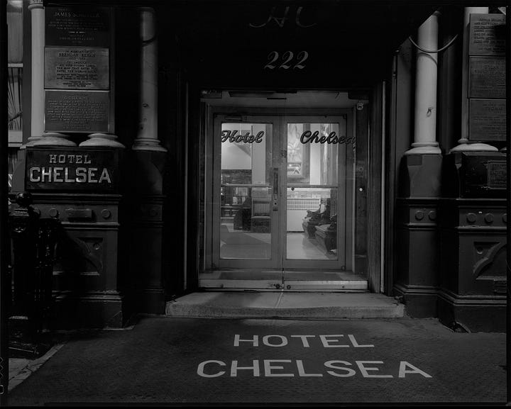 That’s the spirit of the Chelsea: always pushing art, no matter what medium. This kind of performance pushes my work too, because then I photograph these people. It works hand in hand, which is the way musicians used to work. I mean, Leonard Cohen wrote that song about Janis Joplin at the Chelsea; her work pushed his along. Chelsea No. 2 was born out of that.