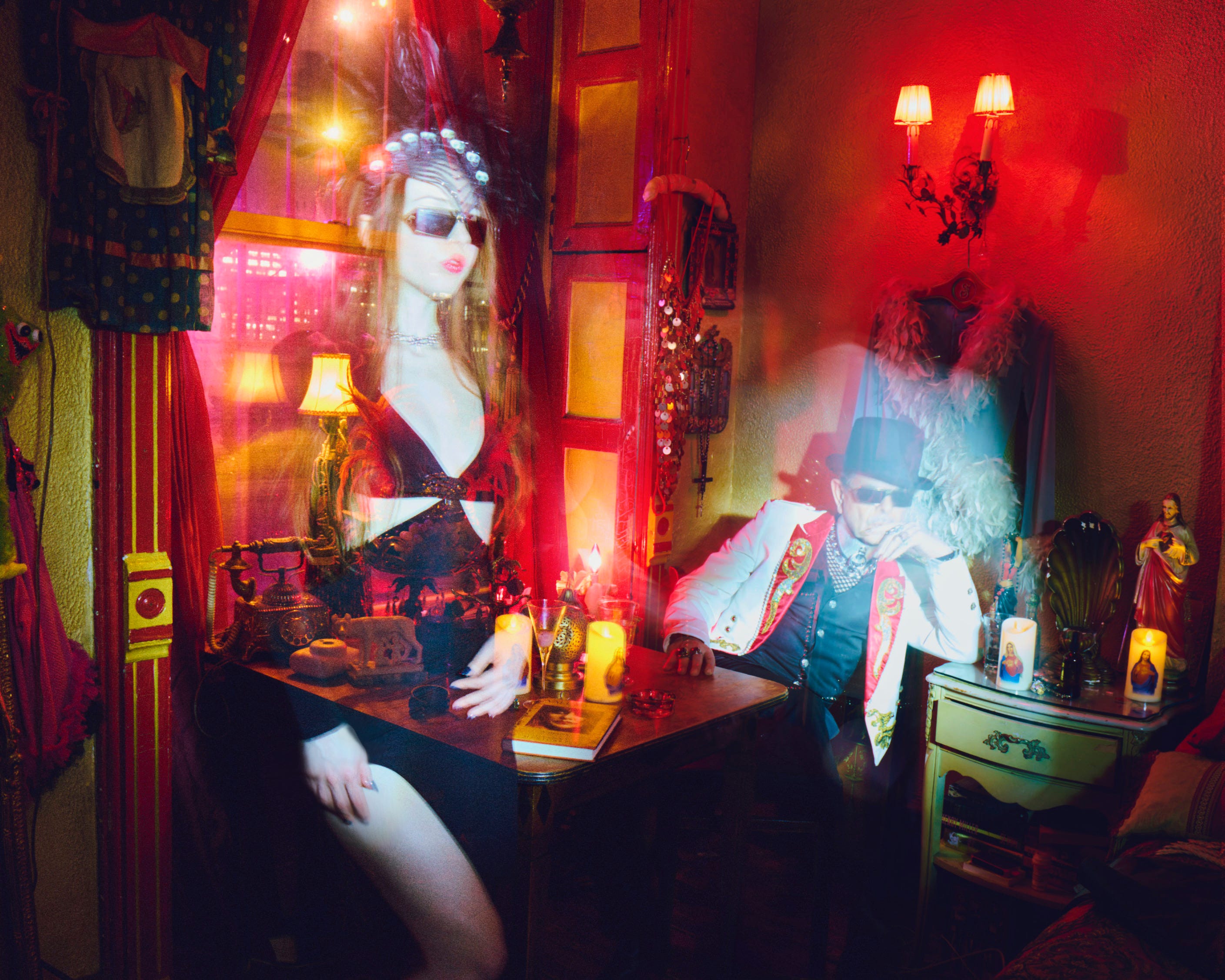 Exactly—like a Russian nesting doll. Grace was there because of Sid and Nancy’s story. She finished shooting at 5:00 AM and came up to my room, and as soon as I saw her in that costume, I already had the picture in my mind.
